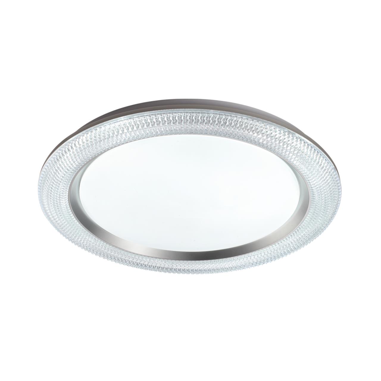 Светильник 7782/ЕL линии VENDY состоит из металлического основания (базы) и пластикового рассеивателя. Материал рассеивателя — высококачественный пластик марки PMMA 2.0 белого цвета с матовой поверхностью, обеспечивающий светильнику равномерное рассеивание и хорошее светопропускание.Форма плафона круглая, декорирована прозрачным акриловым ободом под хрусталь и кантом серебристого цвета. Степень защиты IP43 позволяет использовать светильник в определенных зонах влажных помещений. В комплект входит заменяемый LED-модуль с линзами мощностью 70 Вт, соответствующей лампе накаливания 610 Вт, а также пульт ДУ, с помощью которого осуществляется плавное изменение цветовой температуры в диапазоне 3000—6000 К, изменение яркости, переход в режим переключения теплого/белого/холодного/ночного света. Светильник имеет функцию памяти.