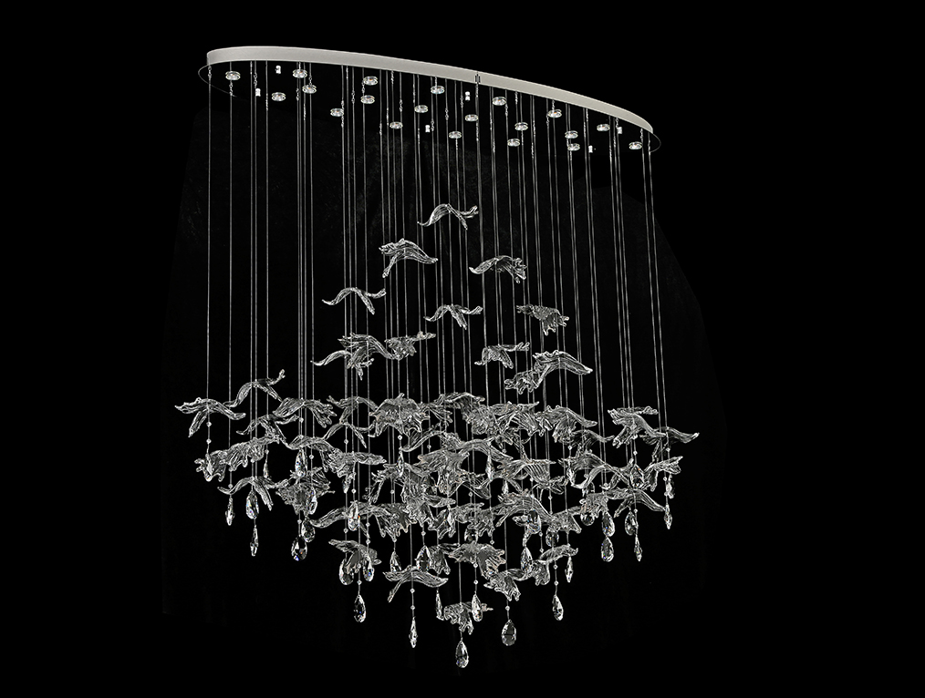 Каскадные newport 8200 8220/140 с oval chrome , люстра, chrome polished сlear glass + silver glass l140*40*h150 cm gu4 20*5w (возможна замена на белое основание по запросу.)